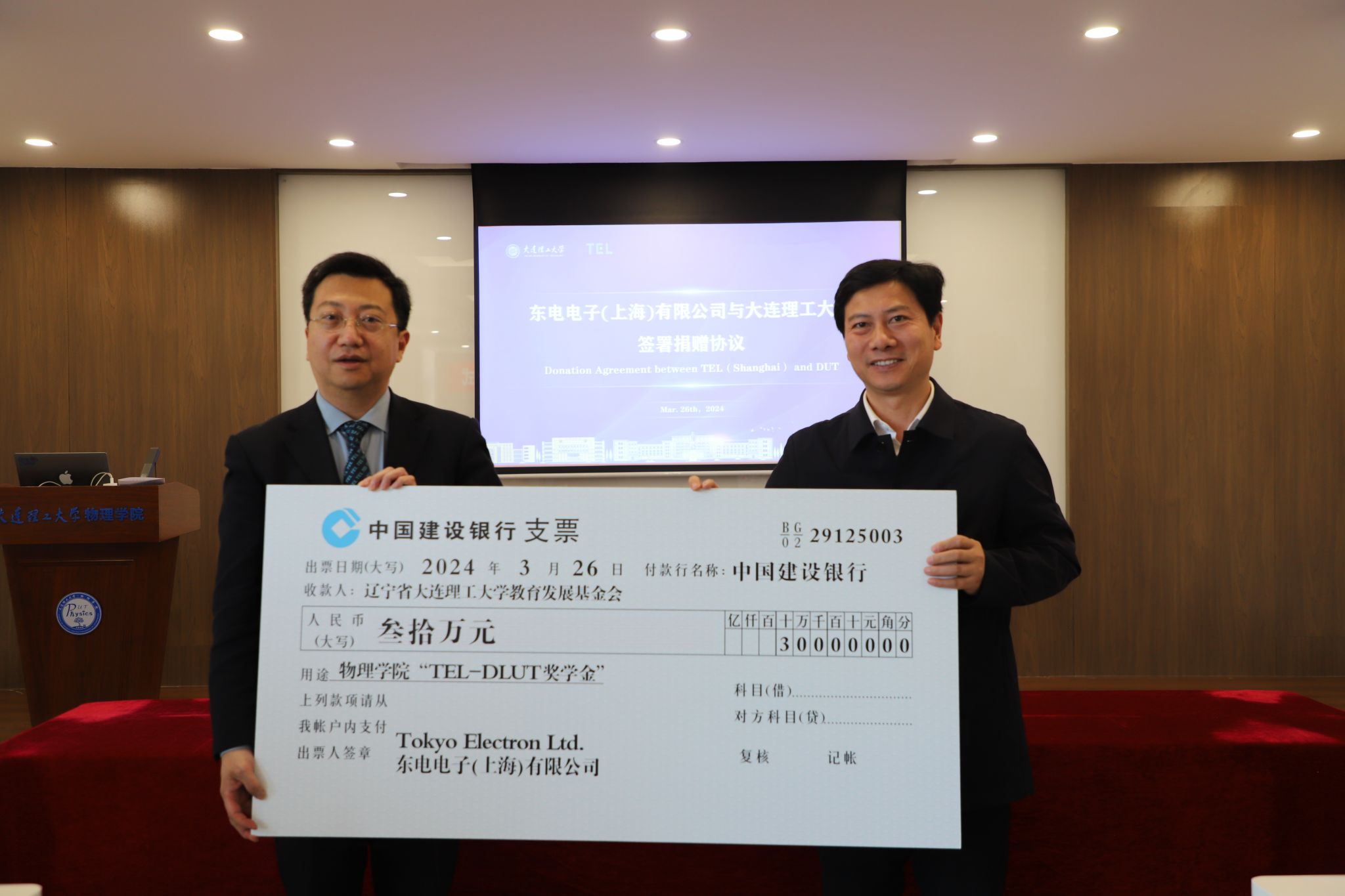 3月26日上午,新葡的京集团8814检测站“TEL-DLUT奖学金”捐赠签约暨颁奖仪式隆重举行。Tokyo Electron Ltd.(以下简称TEL集团)向新葡的京集团8814检测站捐资设立“TEL-DLUT奖学金”,用于支持等离子体物理学科人才培养。学校党委常委、副校长朱方伟、东电电子(上海)有限公司总监钱立群等出席仪式,TEL集团项目总监Yuji Tsukamoto等高管在TEL日本总部线上参会。