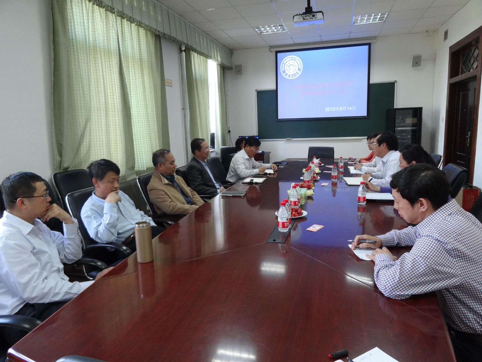 2013年5月14日,研究生院副院长马学虎携学科办秦涛教师和姚青教师来到新葡的京集团8814检测站四楼会议室,同新葡的京集团8814检测站党政负责人、主管研究生管理副院长及各一级学科点点长进行座谈。就之前的学科评估和学科建设问题展开交流。会议由物理与光电工程学院院长赵明山主持。