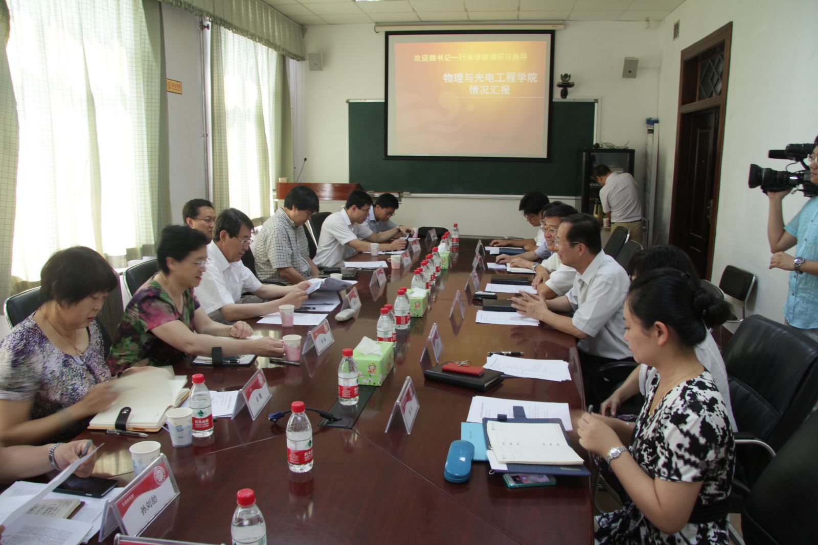 8月8日上午,学校党委书记魏小鹏在物理与光电工程学院系楼425会议室,调研新葡的京集团8814检测站工作。学校办公室主任宋丹、科研院院长宋永臣、教务处处长朱泓、研究生院副院长郭驰、发展规划处处长姚化成、组织部副部长孙刘劼、人事处副处长韩敏、校办秘书科科长苏克治陪同走访。学院党政领导班子成员赵明山、刘金远、周玲、丁洪斌、常亮、杨木出席会议。