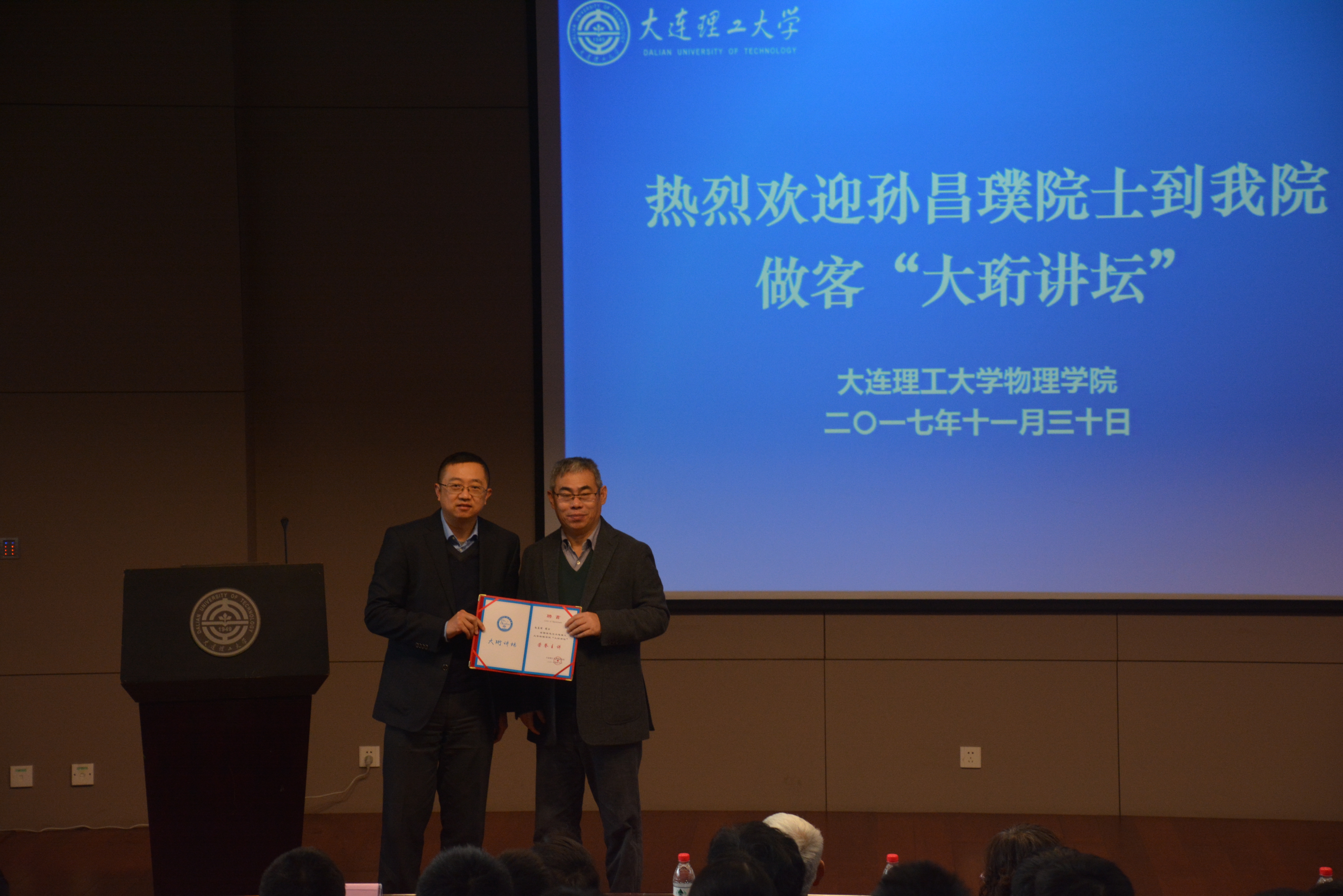 在讲座开始前,新葡的京集团8814检测站赵纪军院长向孙昌璞院士颁发“大珩讲坛”荣誉主讲聘书。
