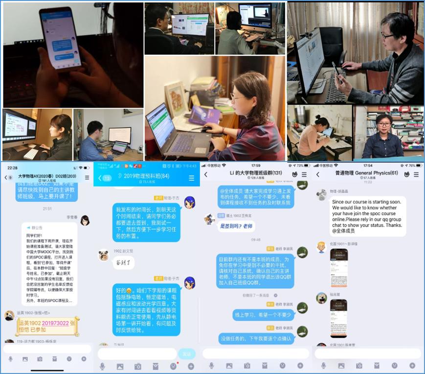 按照学校要求,学院本学期有教学任务的教师在春节过后就投入到在线教学的准备工作中,学院近日相应成立在线教学指导专家组。大学物理教学团队由“老、中、青”三代教师组成,承担着全校工科班、预科班、国际班、机械英文班共四个班型的物理课程教学工作,团队建立起以国家级精品资源共享课程、中国大学mooc平台开放课程为依托,以“大工-超星平台”及“大工-爱课程” 平台为支撑,以学习通、QQ、微信等终端为辅助的云端教学架构,于2月24日(原定开学首日)如期面对近3500名选课学生展开2020年春季学期《大学物理》线上授课。