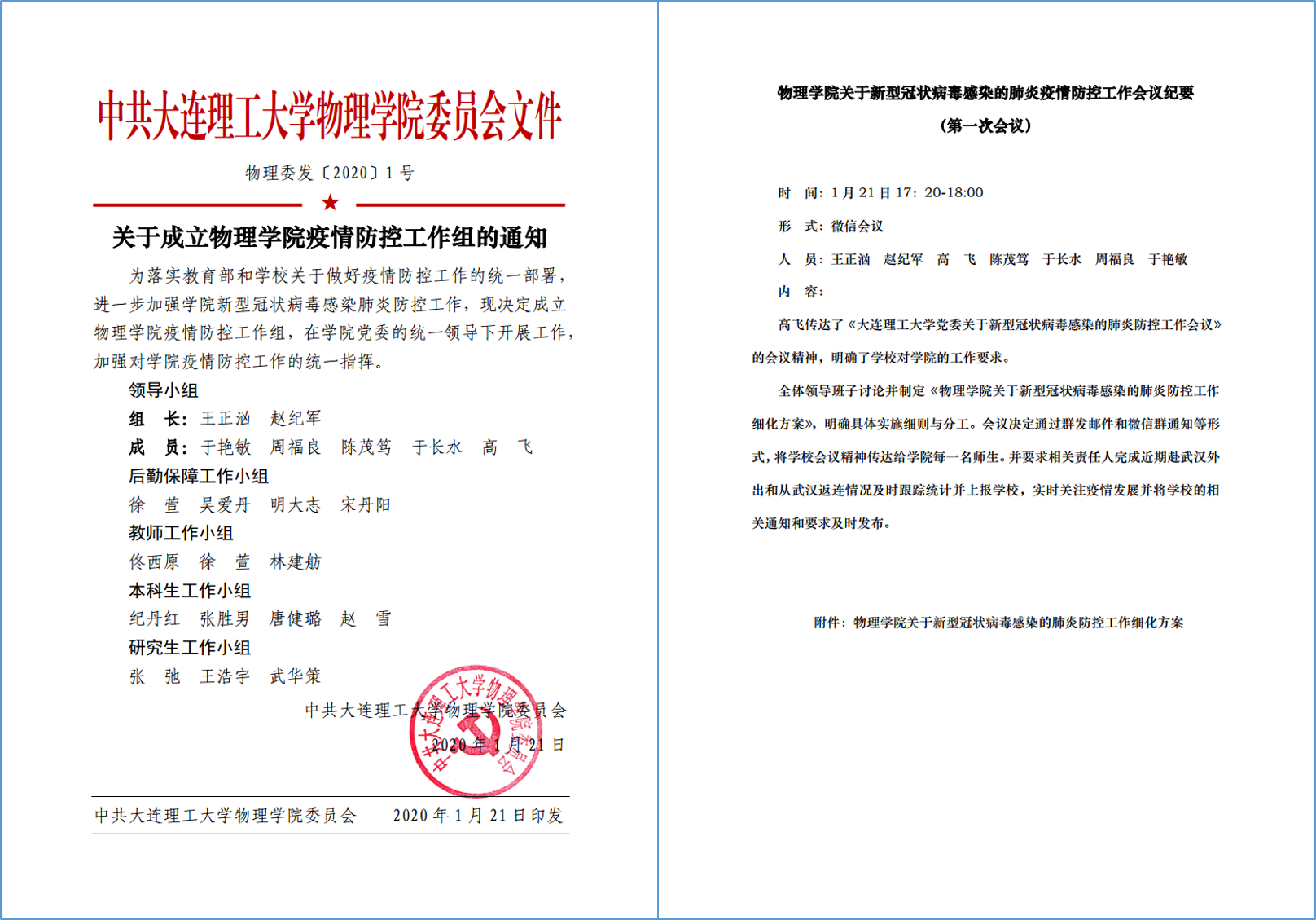 学校疫情防控工作伊始,新葡的京集团8814检测站迅速成立了以党委书记王正汹、院长赵纪军为双组长的学院疫情防控工作组,明确该项工作由学院党委负责,领导班子全体成员参与并承担不同分工。学院党委参考 “一岗双责”要求,确定了领导班子各成员在疫情防控工作中的责任所在,相应按照党、政、研、本的划分成立了4个工作小组,将疫情防控工作的上级部署与院内事务进行了清晰的分配。