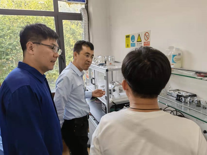 在各科研实验室,王正汹仔细查看了设备用电、气瓶和危化品的存储及标识、大型设备操作规程等,并现场询问了实验人员对规程的掌握程度;高飞重点检查了实验室危险源的识别和现有的防护措施,并给出了进一步的建议与具体的改进方法。