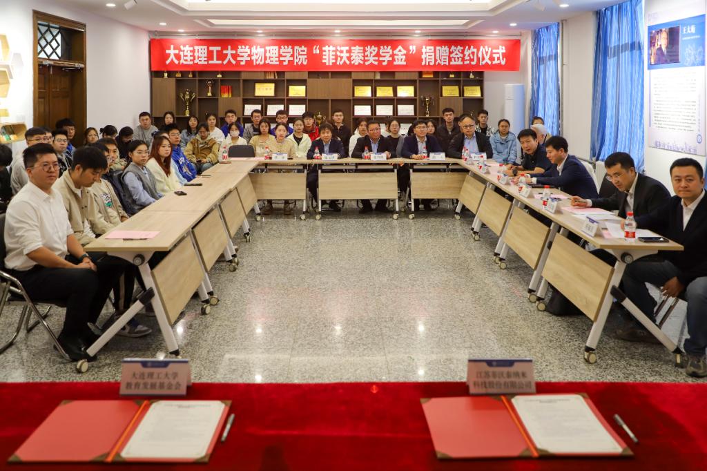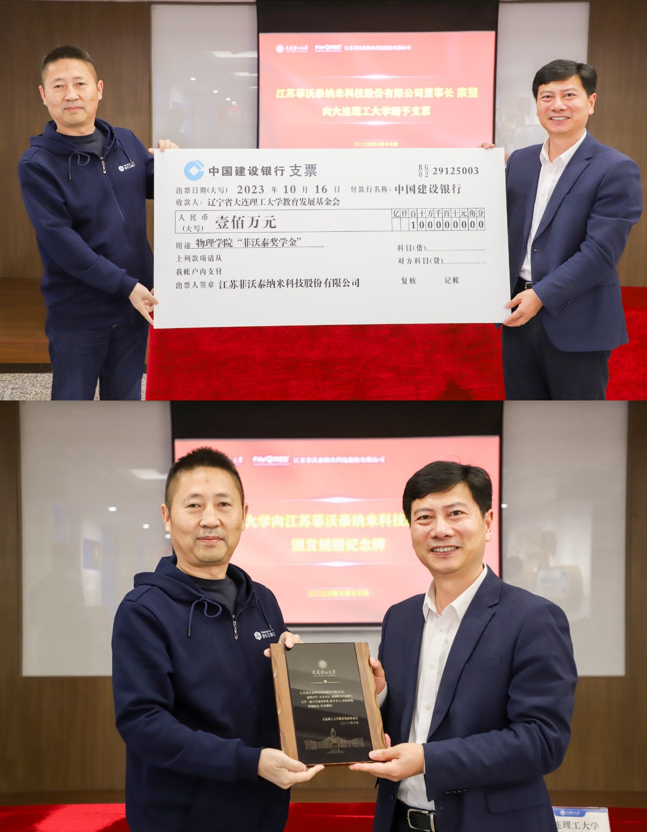 朱方伟代表学校向菲沃泰及其董事长宗坚的到来致以热烈的欢迎和诚挚的感谢。朱方伟表示,菲沃泰出资设立“菲沃泰奖学金”是对学校育人事业的肯定和我校教育事业发展的信任和支持,更是优秀企业诠释价值观、勇担社会责任的体现。学校也定将贯彻党的教育方针,以优异的办学成绩回应社会的关切与期待。鼓励同学们在大工的沃土上明方向、练本领,以积极的态度和不懈的奋斗来回报祖国、社会和学校。