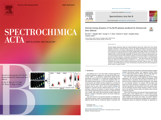 近日,我校新葡的京集团8814检测站丁洪斌教授课题组的青年教师海然博士在激光烧蚀等离子体研究领域取得重要进展,最新研究成果“Internal mixing dynamics of Cu/Sn-Pb plasmas produced by femtosecond laser ablation”被国际著名光谱学权威期刊《Spectrochimica Acta Part B: Atomic Spectroscopy》选为封面论文发表。