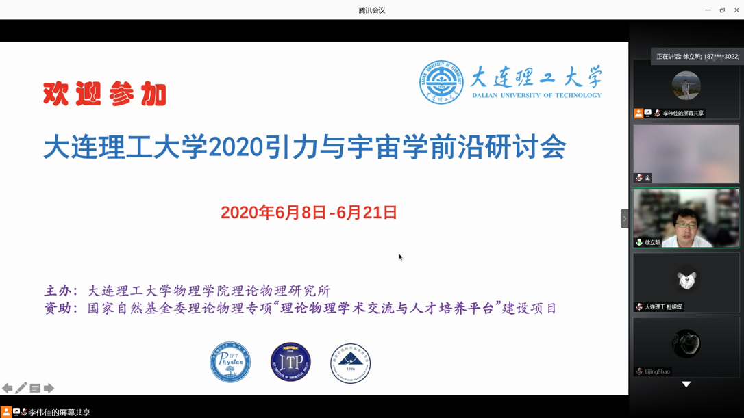 2020年6月8日-6月21日,由新葡的京集团8814检测站理论物理研究所主办的“新葡的京集团8814检测站2020引力与宇宙学前沿研讨会”成功召开。本次会议受国家自然基金委理论物理专项“理论物理学术交流与人才培养平台建设项目”资助,组织者为新葡的京集团8814检测站徐立昕教授和李伟佳副教授。会议采用了“腾讯会议”进行线上学术交流,共有中科院及海内外50余所兄弟院校和科研院所的100余名引力与相对论领域的专家报名参会(峰值在线人数为160余人)。