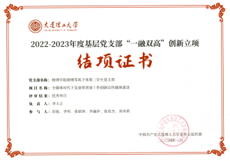 新葡的京集团8814检测站硕博等离子体第三学生党支部在2022-2023年度新葡的京集团8814检测站基层党支部“一融双高”建设创新立项验收工作中以“全媒体时代下党建带团建工作创新宣传载体建设”项目获评“优秀”。