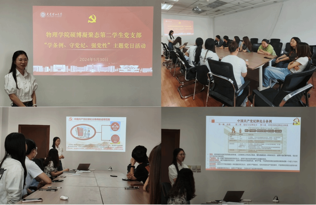 当前,全党正在深入开展党纪学习教育,为加强支部全体党员的党性修养和纪律意识,新葡的京集团8814检测站硕博凝聚态第二学生党支部于2024年5月30日下午,在科技园C座510会议室召开党员大会暨“学条例、守党纪、强党性”主题党日活动,本次会议由支部书记杨秋萍同志主持,支部全体党员参会。