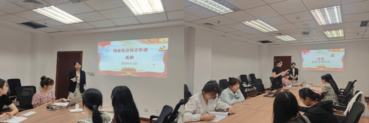 大会第一项议程,对预备党员奚柳同志转为正式党员的事宜进行讨论和表决。首先,奚柳同志对于其在预备考察期间的思想认识、理论学习、科研生活等方面的表现进行了总结汇报。她汇报了自己在预备期间的成长历程和对党的深刻认识,表达了想要成为一名中共正式党员的坚定决心。入党介绍人及与会党员针对奚柳同志的表现进行了认真讨论,并通过无记名投票的方式进行表决,最终奚柳同志全票通过,按期转正。