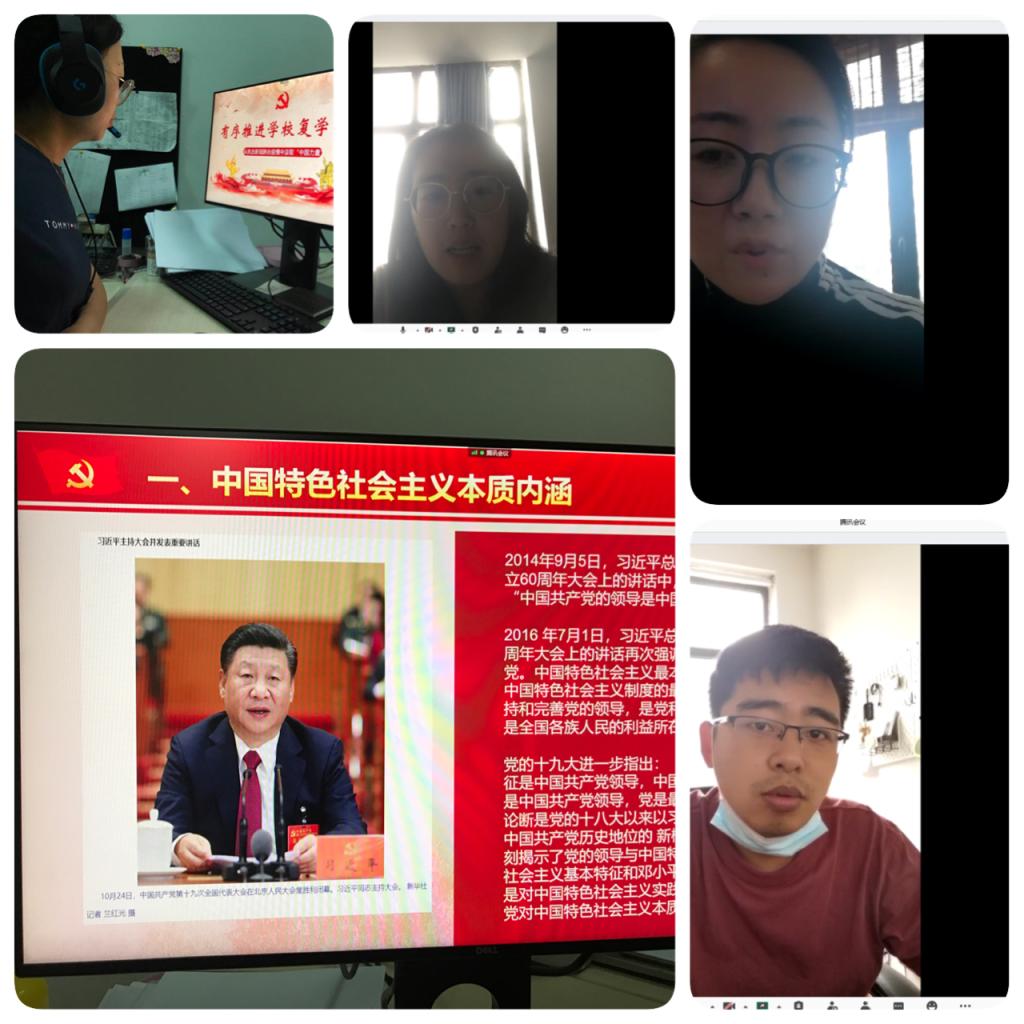 为深入学习贯彻习近平总书记关于教师队伍建设的重要论述和全国教育大会、全国高校思想政治工作会议精神,引导广大教师筑牢思想之基,凝聚奋进力量,着力打造一支政治素质过硬、业务能力精湛、育人水平高超的新时代教师队伍,党委教师工作部特面向全校教师开展“师道师说”系列教育,6月16日上午,由复旦大学马克思主义学院教授、博士生导师马拥军进行了《百折不回的世界社会主义运动》,下午14:00由复旦大学教授、博士生导师,中国研究院副院长范勇鹏进行了《理解中国政治树立四个自信》的培训。我支部教师党员积极收看学习。学校按照教育部工作部署启动了“让党旗始终高高飘扬——高校基层党组织常态化疫情防控‘四个一’活动”,此项活动由教育部思政司发起,在部署高校和部省合建高校中广泛开展。6月19日上午,首场高校党组织战“疫”示范微党课开讲,北京大学、清华大学、武汉大学、华中科技大学4校党委书记和基层党组织书记以“1+1”形式联合开展示范微党课。我支部师生党员组织收看学习。
