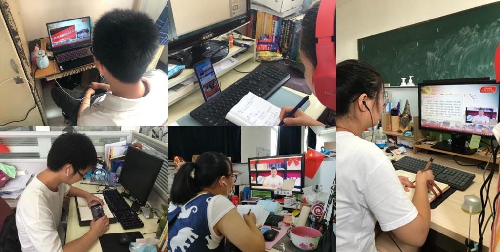根据教育部党组《关于在教育部直属高校和部省合建高校各级党组织开展“四个一”行动方案》, 高校战疫示范微党课第7讲于8月5日上午10:00面向全国开讲。我校党委书记王寒松同志带领4位基层党组织书记围绕《在抗疫伟大斗争中书写坚定自信的历史篇章》,讲述战“疫”系列示范微党课。学院党委将本堂微党课作为“三会一课”和主题党日的重要内容,组织全院师生党员以自行云端观看为主要形式开展学习活动。各师生党支部在学习过后,以支部集体或党员个人等多种角度撰写了学习体会。