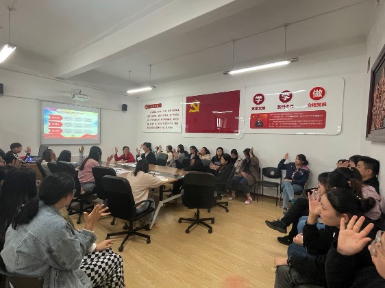 之后,支部大会对3名发展对象接收为预备党员事宜进行讨论与表决。发展对象宣读入党志愿书,说明了对党的认识,自身的政治信仰,入党动机,以及自身存在的优缺点,表明了对待入党的态度和决心。随后,入党介绍人分别介绍了发展对象的主要情况,并对其能否入党表明意见。由赵圆圆同志代表支委会向大会报告了发展对象的政治审查情况、征求党员和群众意见的情况。在与会党员进行充分讨论的基础上,有表决权的党员进行无记名投票表决。按照逐个讨论、逐个表决的原则,逐一进行讨论,表决,并宣布投票结果,由赵圆圆同志宣读《关于接受孙庆伟等3名同志接收为中共预备党员的决议》。