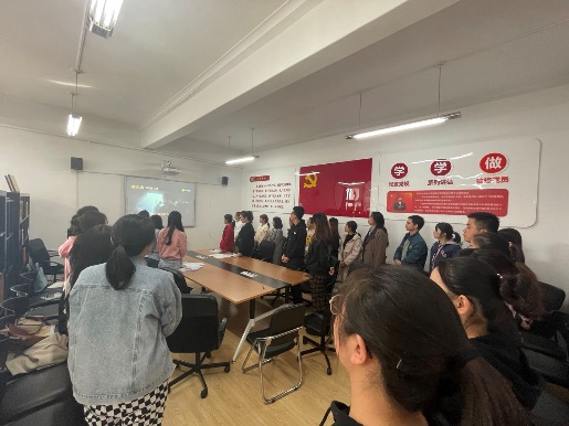 最后,支部新接收的预备党员在他们入党介绍人的带领下,面向党旗,庄严宣誓。