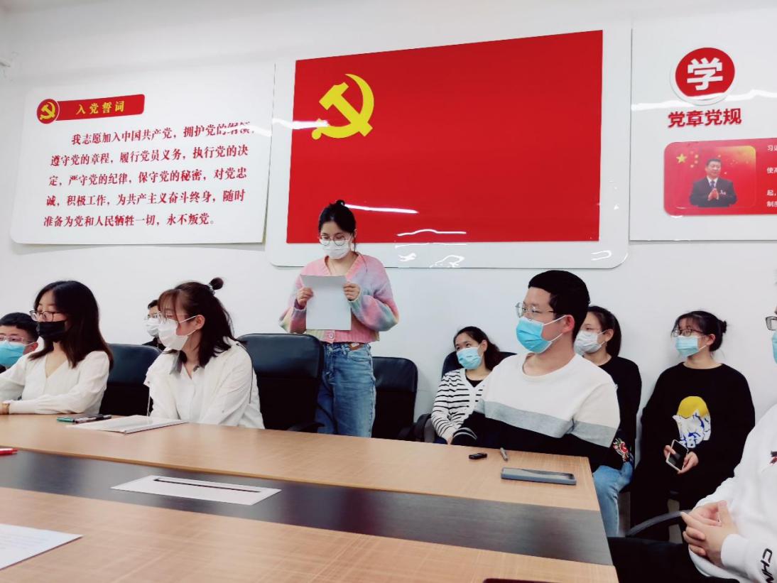 大会第三项为讨论确定发展对象相关事宜。刘津依同学经过一年以上培养教育和考察,基本具备党员条件。在会议上,刘津依同学向党组织汇报了自己对党的认识,入党动机,剖析自己的优缺点,并表明成为党员的决心,表示将进一步接受党组织考察。其两名培养联系人分别为陈永睿同志和宋林育同志,他们分别介绍了该同学的基本情况和在考察期间的表现,并发表意见,表明该同志基本具备条件,说明了可以转为发展对象的意见。经过支部全体党员和群众充分讨论和投票,决定确定刘津依同学为发展对象。