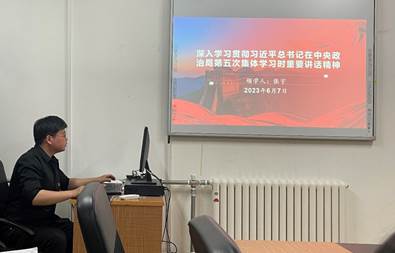 2023年6月7日,新葡的京集团8814检测站硕博等离子体第二学生党支部于物理楼422召开党员大会。会议由党支部书记段蒙悦同志主持。大会的主要内容包括新葡的京集团8814检测站副院长高飞老师讲党课、学习贯彻习近平总书记在中央政治局第五次集体学习时的重要讲话精神和支委补选三项内容。