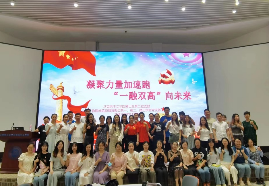 为热烈庆祝中国共产党成立102周年,深入推进学习贯彻习近平新时代中国特色社会主义思想主题教育,扎实推动学校“一融双高”建设,6月28日上午,新葡的京集团8814检测站硕博凝聚态第一、第二、第三学生党支部联合马克思主义学院博士生第二党支部于马克思主义学院情景教室开展以“凝聚力量加速跑 一融双高向未来”为主题的党日活动。