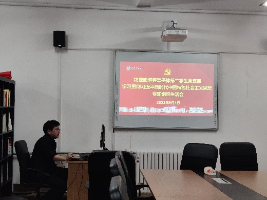 会议第一项,集体学习习近平新时代中国特色社会主义思想,会前支部委员会进行周密安排和充分准备,并且根据要求严格履行专题组织生活会程序,围绕规定学习内容,组织党员个人自学并交流学习感想,为会议召开奠定了坚实基础。会上,党支部副书记翟文远同志组织全体党员学习贯彻习近平新时代中国特色社会主义思想。习近平新时代中国特色社会主义思想是在科学社会主义焕发新生机、两种社会制度的较量呈现新态势的时代背景下形成的。它是党和人民实践经验和集体智慧的结晶,是中国精神的时代精华,是国家政治生活和社会生活的根本指针,是系统完备的科学体系,具有特色鲜明的理论品格,是21世纪马克思主义、当代中国马克思主义。
