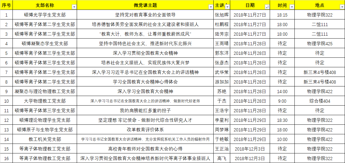 截至目前,各“共享学习站”报送的微党课信息如上表所示,全院师生可以结合个人日程选择性参加,做到全体师生均至少参加一次全国教育大会精神学习。参加所属群体之外的“共享学习站”学习的师生,请在党课开始之前向相应支部登记个人信息。