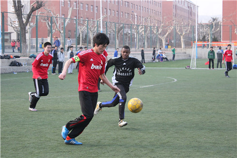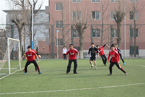 在今天的比赛中,新葡的京集团8814检测站队采取了“重点防守”的阵容。上半场比赛,新葡的京集团8814检测站虽创造了几次得分的机会,可并没有将优势转化为胜势。国交学院队进攻猛烈,也仍然没有攻破新葡的京集团8814检测站队的大门。双方二线阵容拼抢激烈,不过均没有取得进球,最终上半场比赛以双方0比0握手言和结束。中场休息时间,队长朴敏清为队员们打气加油,队员们相互鼓励充分体现了新葡的京集团8814检测站足球队团结一心、奋勇争先的精神。