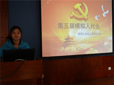 3月15日下午,由物理与光电工程学院团学社理论学习中心组织举办的第五届模拟人民代表大会分会在物理系楼322顺利召开。该会议模拟了人代会召开的情景,采取比赛的形式,由参赛选手提出议案,并回答评委的问题。出席本次会议的评委有新葡的京官网的团委常务副书记金美晨、组织部部长崔佳琪、青年志愿者协会会长王加彬、实践部部长殷旭飞、理论学习中心主任刘鑫怡以及来自校理论研究会的刘金栋。