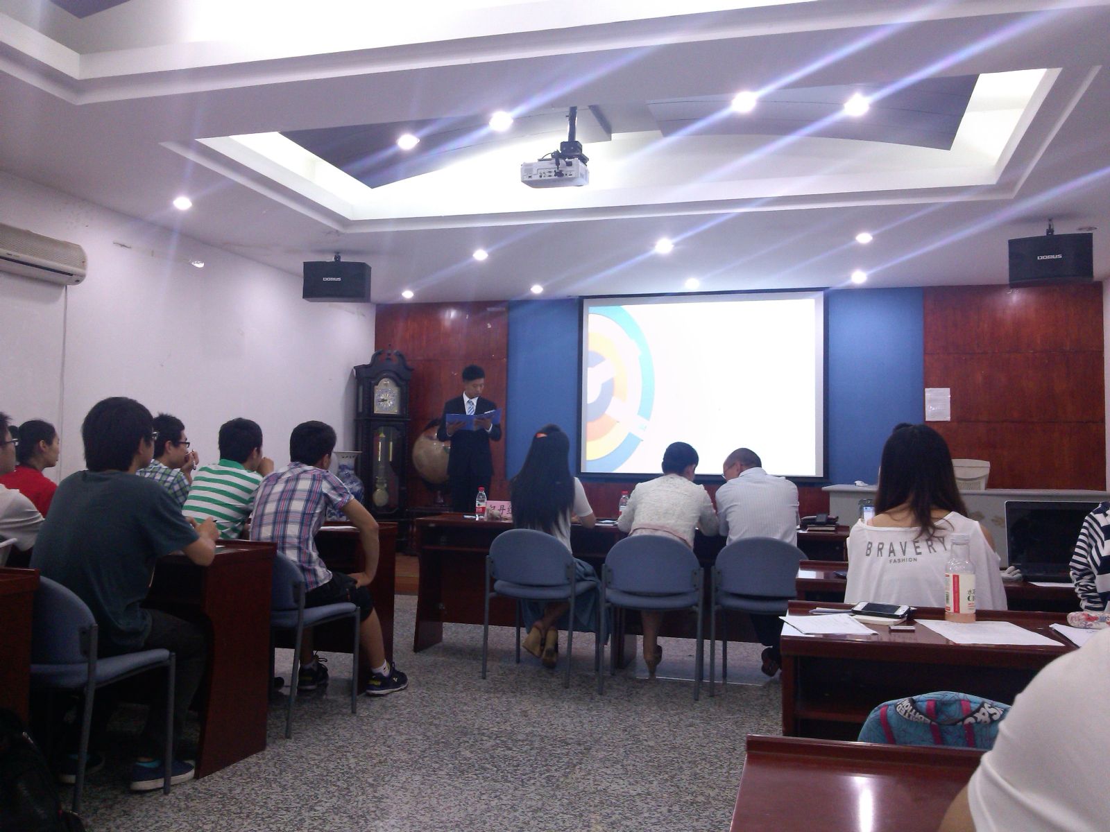 经过近1个多小时紧张激烈的评选,物科1201班获得一等奖,物理1202、1204班分获二等奖,物理1201、1203、1205、1206班获得三等奖。至此,物理与光电工程学院2012级优良学风建设中期答辩圆满结束。