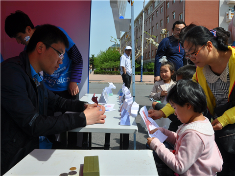为保证本次“大现场”活动在科普性与娱乐性上的平衡,更加全面地展示物理学子的综合素质,新葡的京集团8814检测站专设了“趣味物理游戏区”和“物理学子文艺舞台”,成为“大现场”最热门的区域板块。趣味物理游戏区不仅设置了结合物理学科特点的 “物理知识灯谜”、“物理学史填字游戏”、“力学桌球”,还设置了考验游戏参与者科学常识与校园常识的“欢乐大富翁游戏”,同时主办方还根据学生喜好,设置了“飞镖扎气球”、“纸杯接乒乓”、“棋子走迷宫”等诸多常规类游戏。任何人参与到任何游戏当中都可以根据成绩换取不同额度的积分圈,进而在琳琅满目的奖品兑换区换取心仪的游戏奖品。