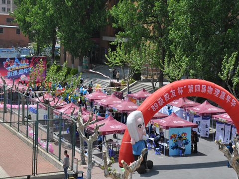 5月10日,伴着热情洋溢的音乐和明媚温暖的阳光,备受关注的“89级校友杯”第四届物理嘉年华之“大现场”活动在我西山生活区福佳体育场前广场顺利举办。物理与光电工程学院团委、学生会、社团联合会经过前期漫长的策划与筹备,为广大师生呈现了一场集科普性、文艺性、趣味性于一体的校园文化活动盛宴。持续全天的“大现场”活动吸引到大量在校师生及热心市民参与,校团委副书记王杨老师、新葡的京集团8814检测站党委副书记兼副院长杨木老师、大学物理实验教学中心伏静丹老师以及新葡的京集团8814检测站各辅导员老师莅临现场进行指导。