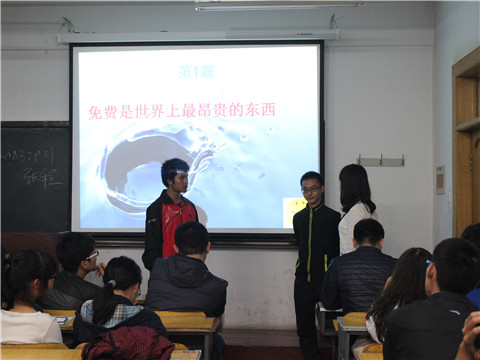 理论演讲题将本场比赛推向高潮,短暂的准备之后便是精彩的展示。各小组同学们或者从自身经历出发,或者放飞自己的思想结合关键词,发挥想象力,讲诉着自己对于自己所抽到的关键词的看法,更有同学别出心裁,用情景剧的形式来表现对关键词的剖析,严谨不乏搞笑,趣味不乏真理。