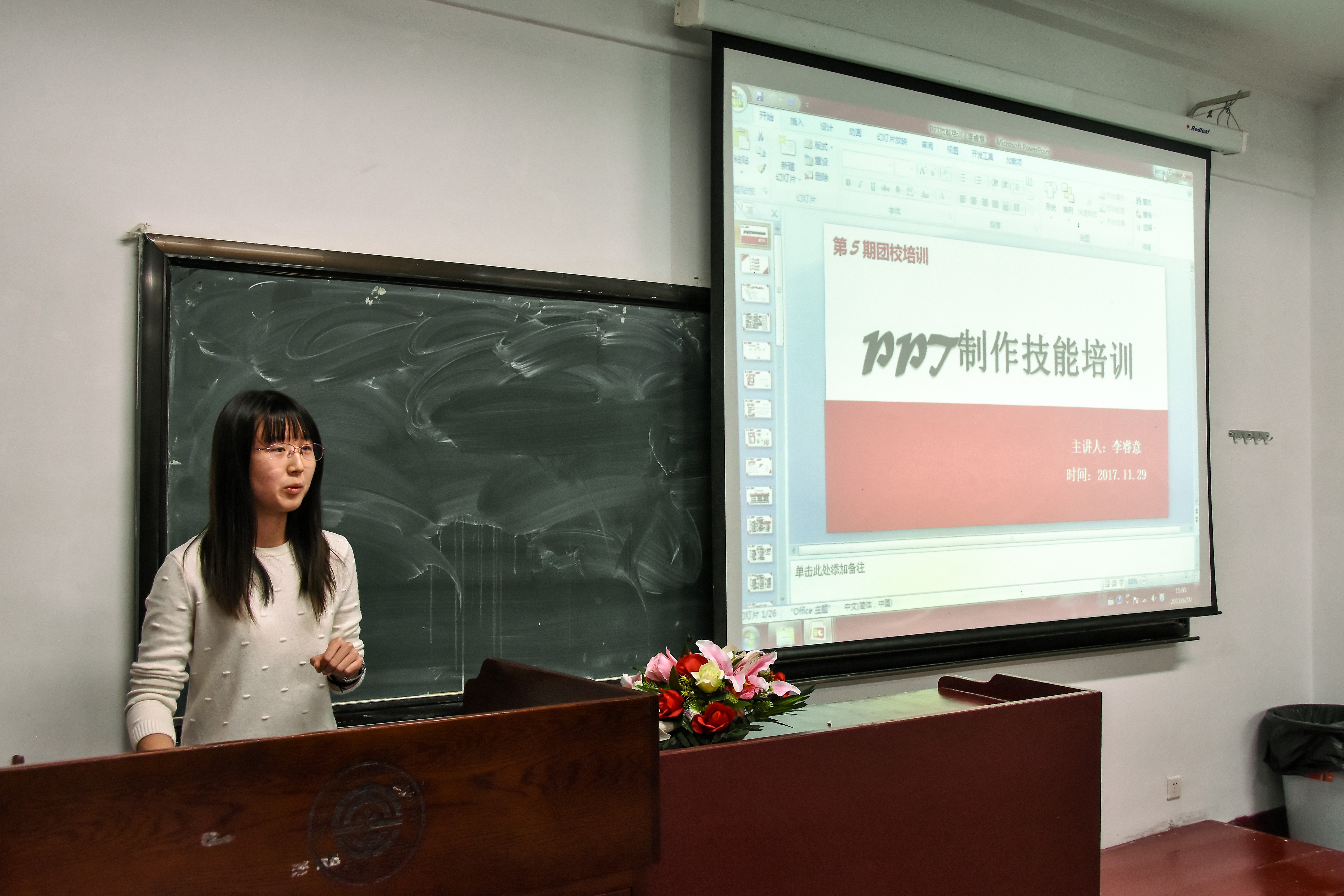11月29日晚6:30,为满足同学们对PPT制作和公文写作技能的需求,近一步提高同学们的工作水平和服务同学的能力,新葡的京集团8814检测站于机械馆召开第五次团校,并对相关方面技能进行培训。出席本次团校培训的嘉宾有团委常务副书记李睿意,实践部部长罗英,以及实践部副部长刘璐。