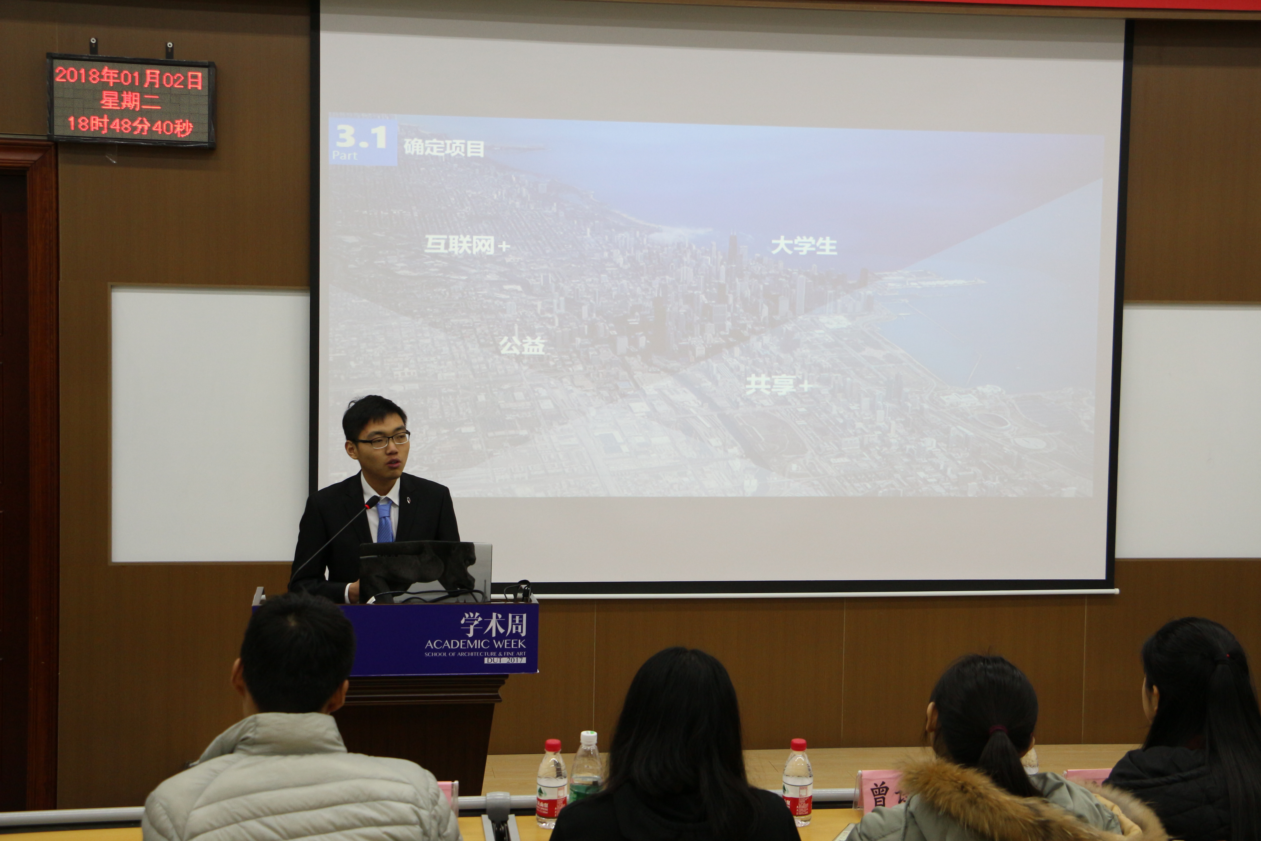 2018年1月2日晚6:30,由新葡的京集团8814检测站和建筑与艺术学院联合举办的创梦杯宣讲会在第二教学馆309室举行,出席本次活动的嘉宾有校团委实践部大学生创新创业中心副主任赵锋锦,新葡的京集团8814检测站科技实践部部长周滔,新葡的京集团8814检测站科技实践部副部长乔家鑫,以及来自建筑与艺术学院和建艺科创部的马骁尧、曾译莹、侯雅洁等。