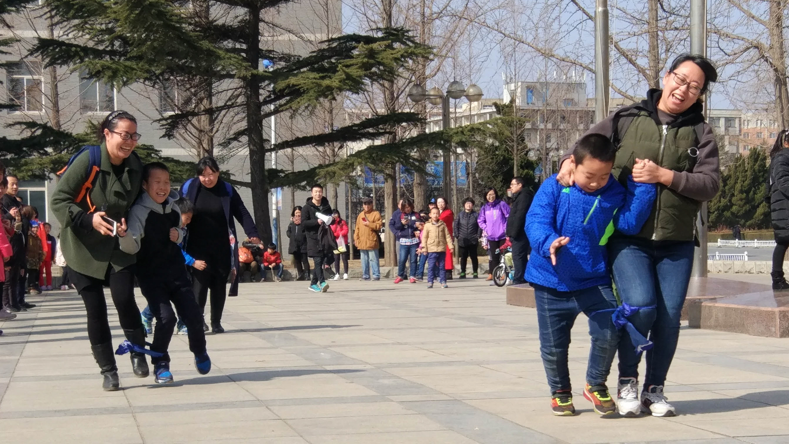 活动继续开展,大家来到喷泉广场,分队参与“两人三足”亲子游戏。父母与孩子的开怀笑颜,空气中弥漫着幸福的味道,正是这个活动成功点之一。游戏结束之后,在冯雨帆同学的带领下,一行人来到“中国奥运第一人”刘长春雕塑前,聆听刘长春当年艰苦训练的历程,感受他不屈不挠的精神。
