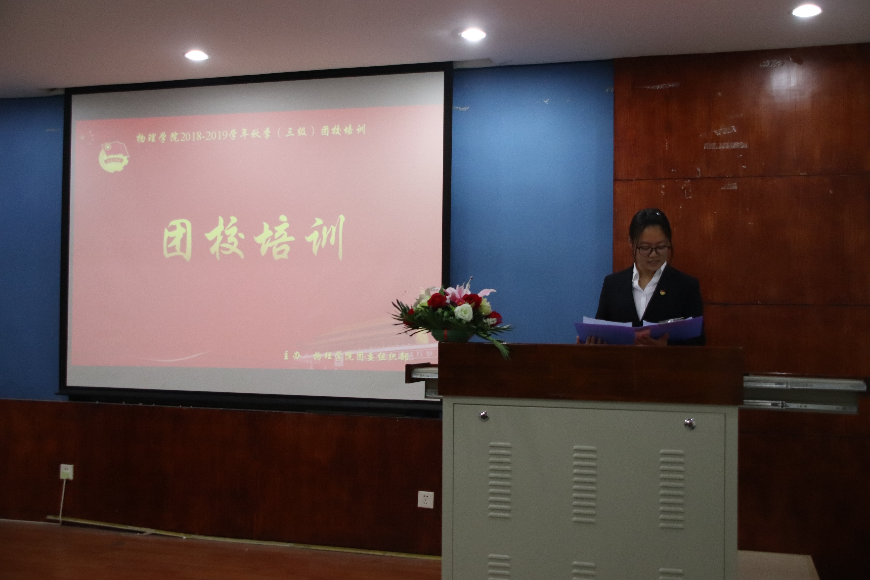 为推进实践月主题活动顺利开展,并响应学校号召,积极建设活力团支部,我校新葡的京集团8814检测站于11月19日晚上六点在物理系楼322教室开展2018-2019学年秋季第四期团校培训。出席本次培训的嘉宾有学生会主席兼团委副书记边于,团委常务副书记刘禹君,团委实践部部长李睿,团委组织部部长何浩。