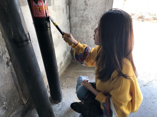 2019年4月15日,项目组成员来到社区周边的小区,在调研小区垃圾分类情况的同时对社区张贴的陈旧广告进行清洁。在清理过程中,项目组成员了解到,社区环境的破坏不是一天而成的,而社区环境的清理更不是一蹴而就的,这也加剧项目组成员对社区环境保护宣传的想法。