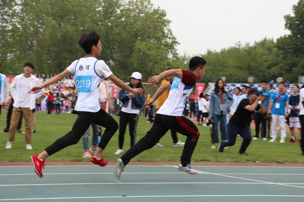 各大赛事在田径场上有序进行。在各个赛区,都闪动新葡的京集团8814检测站的运动健儿奋勇拼搏的身影,他们或是在跑道上不懈驰骋,全力冲刺;或是在跳远区积蓄全力,奋勇一跃。男女子800米、男女子4*100米、男女子4*400米、男女子标枪比赛中均有物理学子的出色表现。新葡的京官网张璟更是在女子100米、女子200米的比赛中荣获个人单项金牌两枚,荣耀地展示着物理学子的体育水平。此外,新葡的京官网获得金牌的还有女子标枪的石航睿、女子铅球的刘璐。他们为荣誉而战,为自己而战,为学院而战,为在辛苦训练中抛洒的每一滴汗水而战。成,不负韶华。败,与有荣焉。