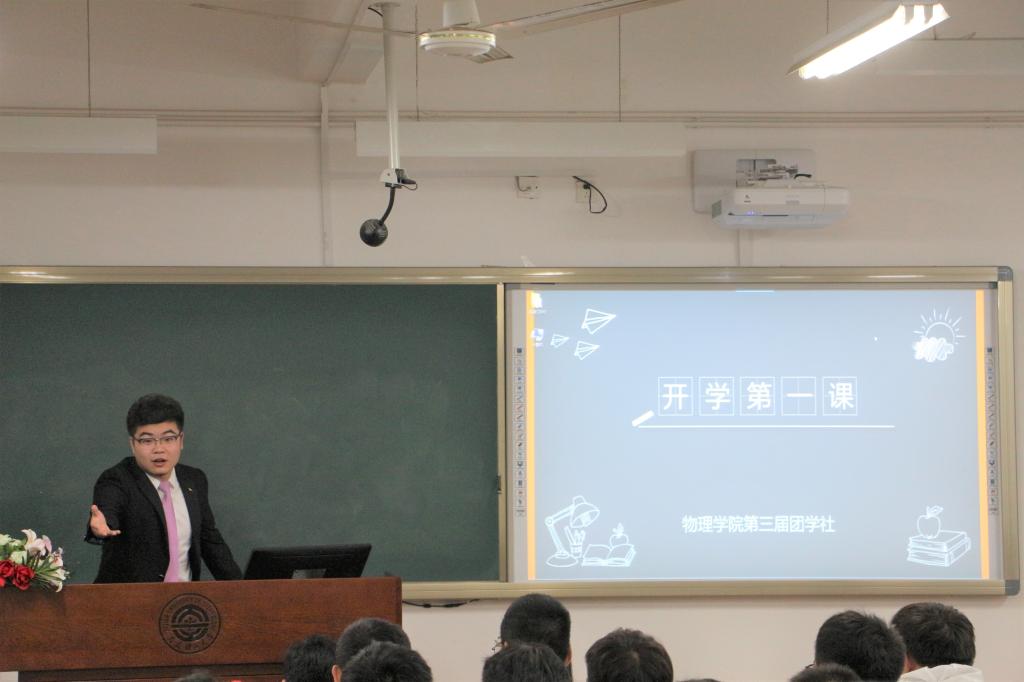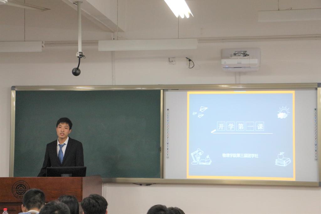 会议开始,王栋梁同学从什么是新葡的京集团8814检测站团学社、在物理团学社里有什么、加入团学社你学会什么三个方面向新生进行详细的团学社介绍,他认为团学社活跃的环境不仅能促进物院学生之间的交流,还能提高同学的交际水平。谈及团学社的经历王栋梁同学觉得,团学社能发掘潜力,各方面培养学生的能力。