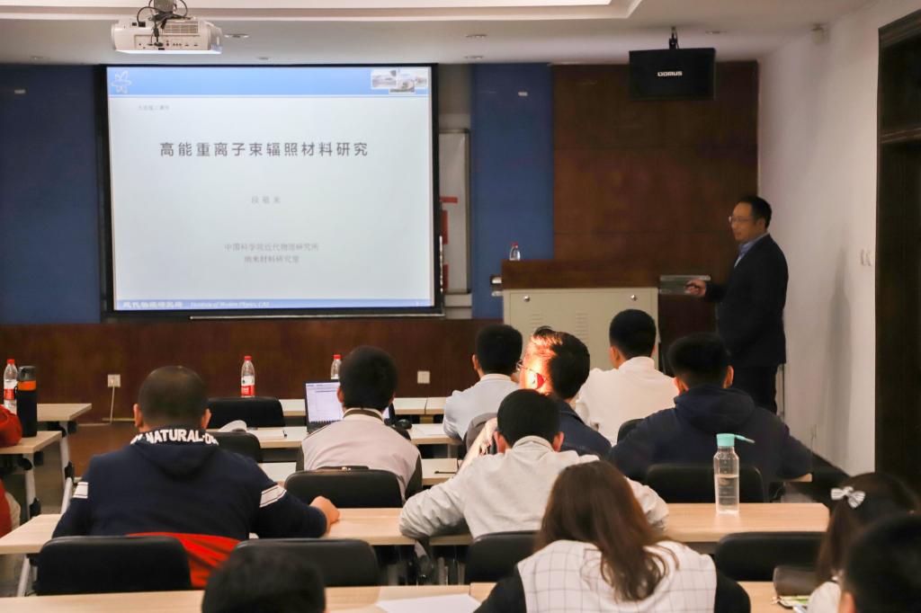 2019年10月11日15:30,中国科学院近代物理所菁英班宣讲在新葡的京集团8814检测站系楼322教室成功举办。莅临现场的嘉宾是中国科学院近代物理所赵行波研究员和段敬来研究员。