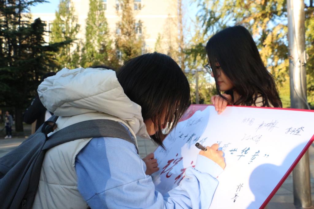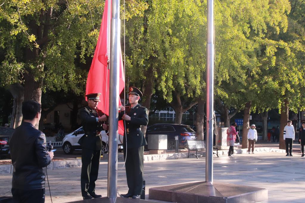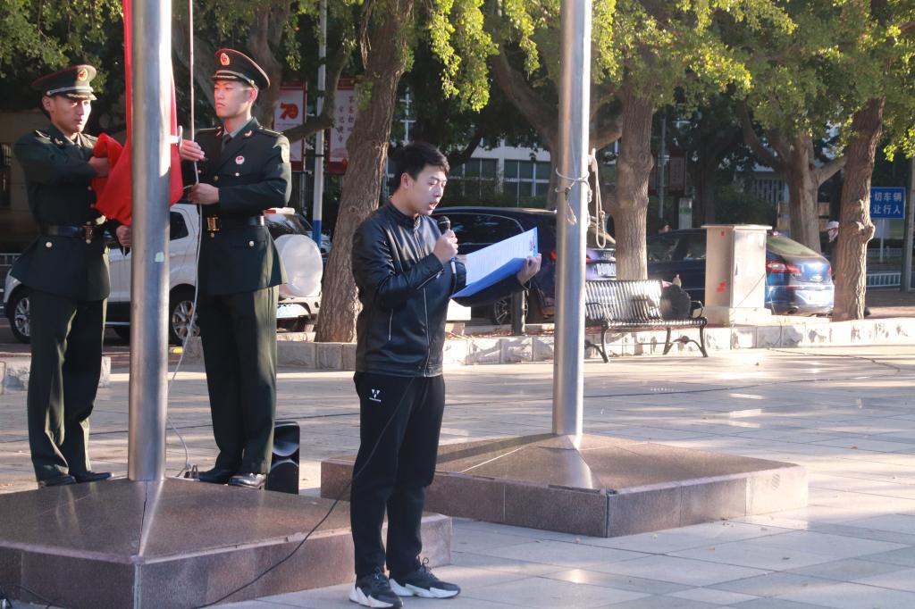 金秋送爽,清风拂过,全体在场学生及工作人员迎着朝阳开展这次升旗仪式。主持人李雨萌同学向大家讲述中国70年来的发展不易,宣扬同学们热爱国家,敬爱国旗。主持人铿锵清脆的声音中,升旗仪式顺利开始。首先,升国旗、奏国歌、行注目礼。尽管天气寒冷,但在国歌响起,护旗手扬起国旗的那一刻,同学们都挺直腰杆,仰望国旗冉冉升起,让我们感受到千禧学子的爱国热情。这体现国旗在我大工学子心中的庄重,这体现祖国在我大工学子心中的威严。在国旗升起之后,建筑与艺术学院19级本科生李知非作为学生代表上台发言,她向同学们讲述作为新时代的学子,我们应该如何为国家,为民族做出我们力所能及的事情。让同学们明白自己身上的重任,对自己与祖国的关系又有新的思考。在李知非同学发言结束后,学生代表进行七十周年祝福祖国签字活动,同学们用笔书写他们对祖国的赞美,对五星红旗的热爱。至此,此次升旗活动圆满结束。