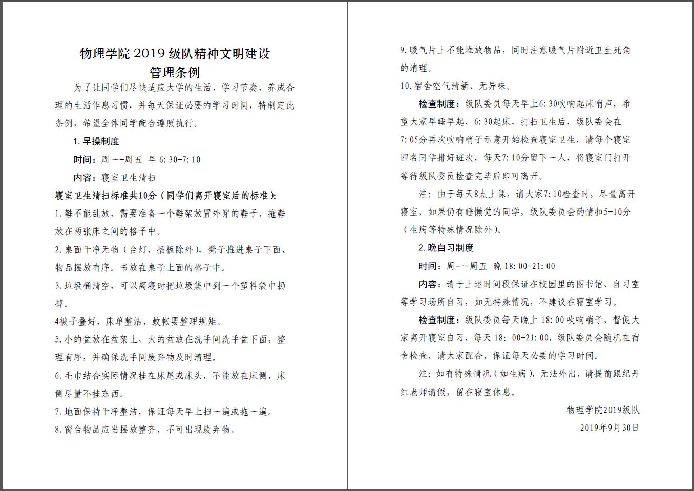 为落实新葡的京集团8814检测站安全教育活动月的号召,新葡的京集团8814检测站将传承性的精神文明建设制度继续发扬,结合安全教育的初衷,设计早操和晚自习制度,为更好地保证大一学生身心安全保驾护航。这是具体的制度条例。