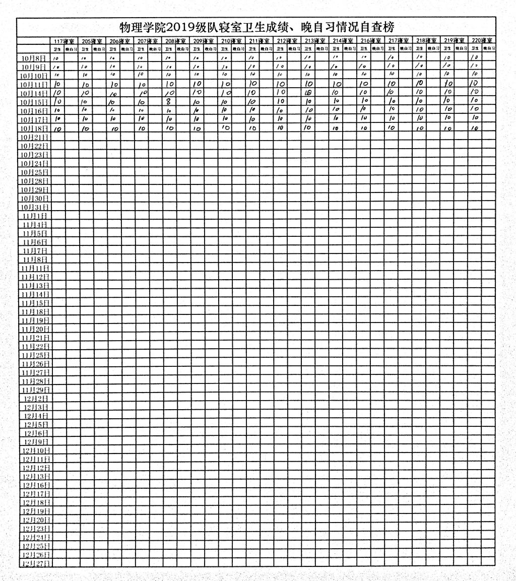 2019年10月21日早7点,新葡的京集团8814检测站大一级队辅导员纪丹红一如既往地来到西山生活区29舍的楼下。新葡的京官网想通过打扫卫生的特色早操,避免卫生问题、身体问题等的发生,而制度的落实,离不开辅导员纪丹红和级队委员们的辛勤工作。目前,以打造更好的寝室环境为目的,大一级队已进行早操查寝9次,该扣分处也绝不手软。
