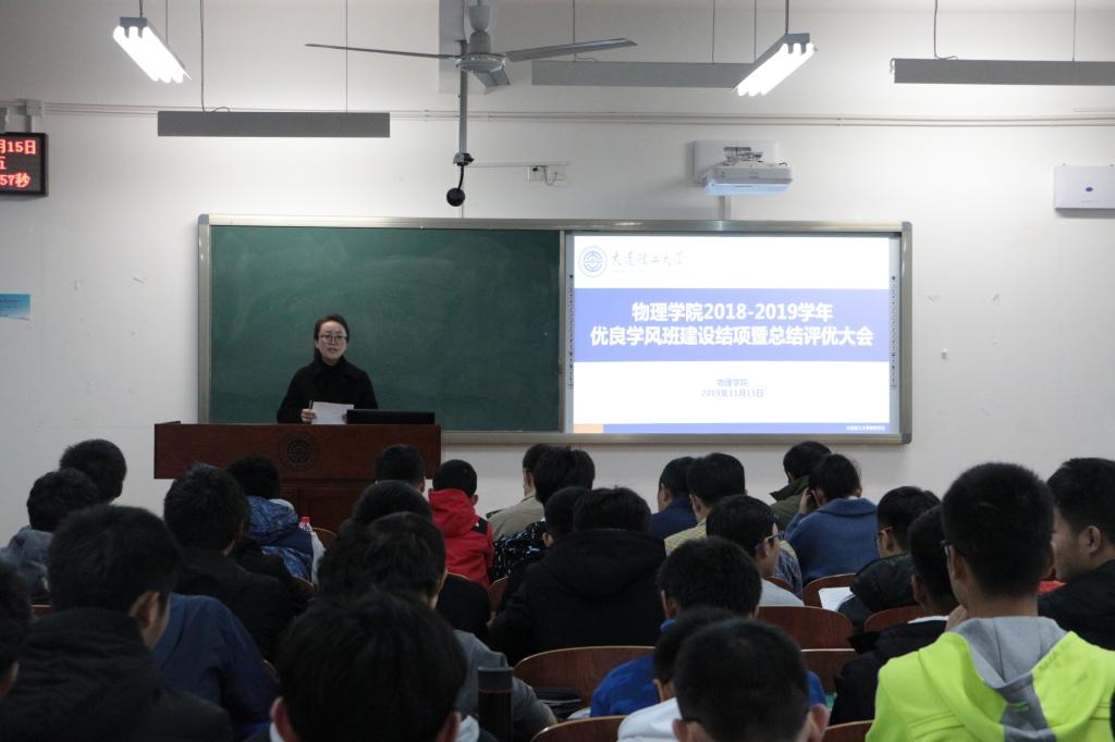 2019年11月15日晚8时,新葡的京集团8814检测站2018-2019学年优良学风班建设结项暨总结评优大会于综合教学二号楼A301教室召开。本次评审团由学院党委副书记兼副院长周福良、物理1603班班主任王成林副教授、应物1801班班主任荆振国副教授、物理1702班班主任王丰副教授、物大珩1901班班主任张钰如老师、2018级辅导员张胜男老师和辅导员工作助理唐健璐老师组成。