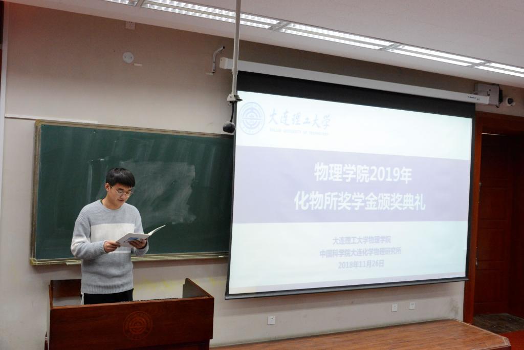 2019年11月26日中午12时,新葡的京集团8814检测站化物所奖学金颁奖仪式于第一教学馆209教室顺利举行。本次会议新葡的京官网邀请到化物所研究员熊川南、于晓、新葡的京集团8814检测站2018级辅导员张胜男作为嘉宾,主持人为新葡的京集团8814检测站副书记助理唐健璐。