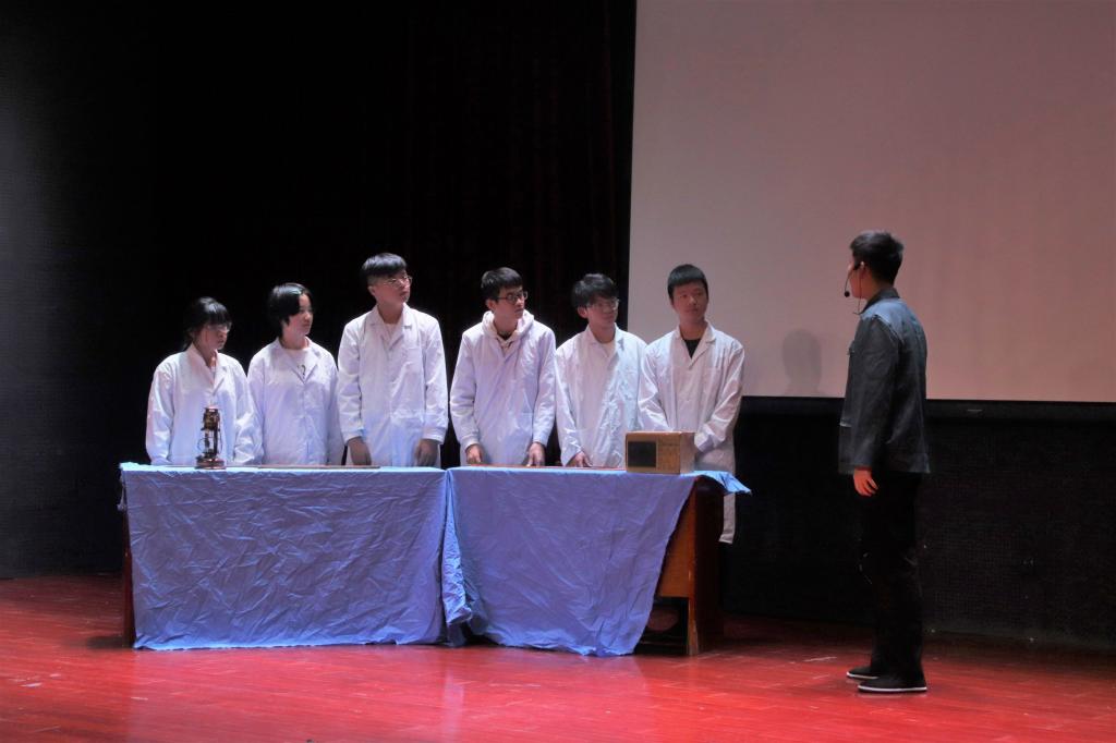 本次联欢晚会的高潮当属话剧《王大珩》无疑。王大珩先生是新葡的京官网的奠基人和开拓者,为新葡的京官网的建设作出巨大贡献。硝烟散去,百废待兴,在祖国需要人才之际,王大珩先生毅然回国,于大连工学院创办应用物理系。面对仪器的短缺,他不辞辛苦,常常亲自去旧货市场寻找可以用于实验的旧物件;面对英国公司的邀请,他断然拒绝,一心为中国制造属于自己的光学玻璃。闫子晗等演员把王大珩前辈为祖国光学事业奉献一切的赤诚之心表现得淋漓尽致。王大珩剧组通过《王大珩》话剧宣传大珩先生的感人事迹,号召同学们勿忘前辈嘱托,用科学开创时代,用技术引领未来。