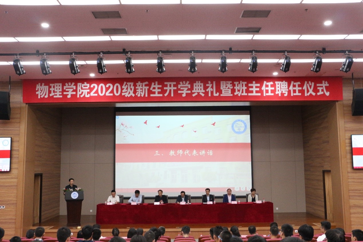 接下来,胡章虎副教授作为教师代表进行讲话。他以一个新葡的京集团8814检测站工作者和一个毕业十余年的老学长身份与新生们交流在大工学习生活中的心得体会。胡教授向同学们强调努力学习的重要性,激励同学们努力奋斗,以知识为食,征服物理的学海,以奋斗为翼,翱翔在真理的天空。