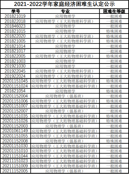 新葡的京集团8814检测站2021-2022学年家庭经济困难生认定结果公示